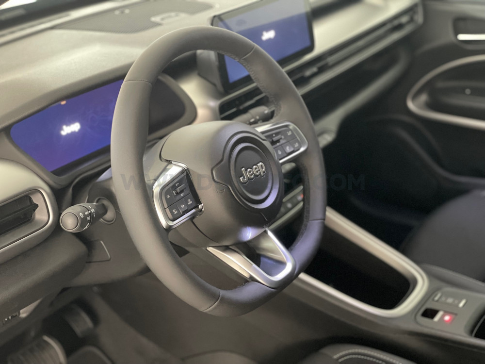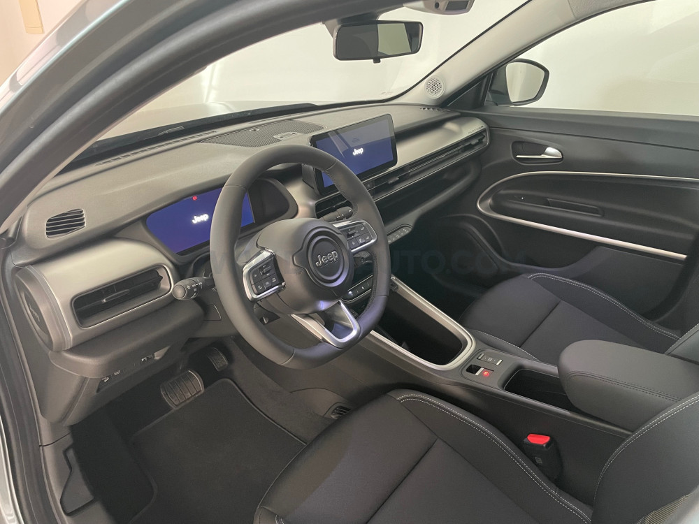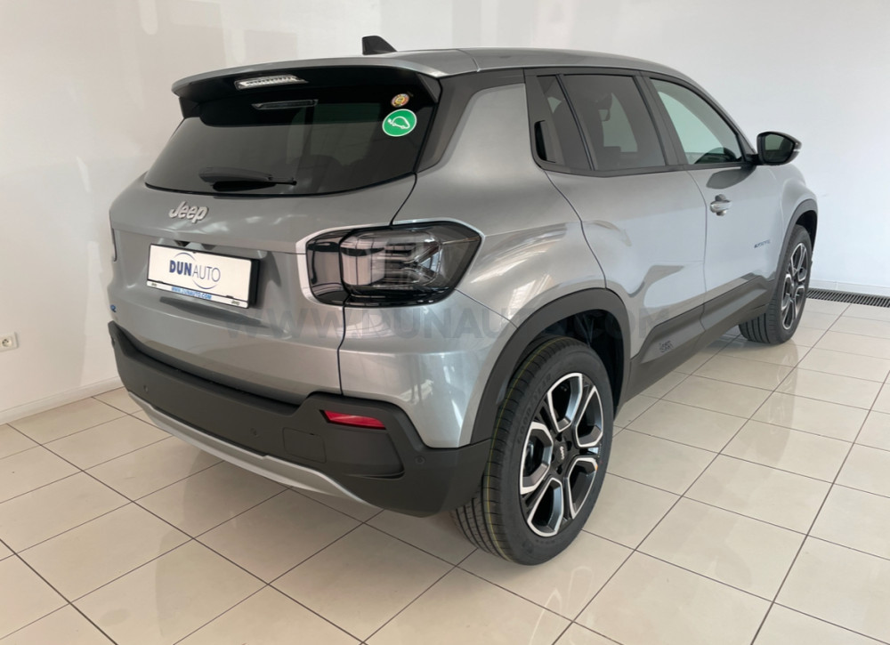 Daždový senzor, Núdzové brzdenie s rozpoznávaním chodcov a cyklistov, E-call - systém SOS núdzového volania, Elektricky ovládané a vyhrievané vonkajšie spätné zrkladlá, Kryty spätných zrkadiel v lesklom čiernom prevedení, Vonkajšie kľučky dverí vo farbe karosérie, Automatická klimatizácia - jednozónová, Madlo pre spolujazdca, Čalúnené sedadiel látka/vinyl, Manuálne nastavitelné sedadlo vodiča v 6 smeroch, Manuálne nastavitelné sedadlo spolujazdca v 4 smeroch, ISOFIX na sedadle spolujazdca, Predná lakťová opierka, Vrecká na zadnej strane predných sedadiel, Zadné sedadlá sklopné v pomere 60/40, Tretia hlavová opierka vzadu, FLEX KIT batožinového priestoru, Volant a radiaca páka čalúnená techno kožou, Elektricky ovládané predné a zadné okná, 17" disky z ľahkých zliatin (215/60 R17), Fix&Go opravná sada pneu, Prístrojový panel s 10.25" TFT displejom, Bezkľúčový štart, Bezkľúčový vstup, Bezdotykové otváranie dverí batožinového priestoru, LED reflektorové predné svetlomety, Halogénové zadné svetlá, Asistent pre zjazd z kopca (HDC), Systém Selec-Terrain (volič jazdných režimov), Zadné parkovacie senzory, Elektrická parkovacia brzda s funkciou auto hold, UconnectTM s 10.25" dotykovým HD (1980x720) displejom, USB, Bluetooth, DAB, Uconnect® Služby pripojenia, USB-C konektor pre zadné sedadlá, Adaptívny tempomat, 6 reproduktorov, EV - Elektrické ovládanie teploty vo vozidle s možnosťou vychladenia/vyhriatia interiéru pred jazdou, Rýchlonabíjanie (až 100kW DC), Príprava pre V2H/V2G (spätná dodávka energie do siete), Príprava batérie pre sekudnárne využitie, Nabíjací kábel MODE 3 (pre verejné stanice) , Palubná nabíjačka s výkonom 7kW, Palubná nabíjačka s výkonom 11kW, Volič jazdných režimov EV, Adaptácia na chladné podnebie, Modelový rok 2023